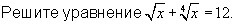 √х=⁴√х²=(⁴√х)², (⁴√х)=t, тогда (⁴√х)²=(t)²=t², t²+t-12=0, t₁=-4, t₂=3,