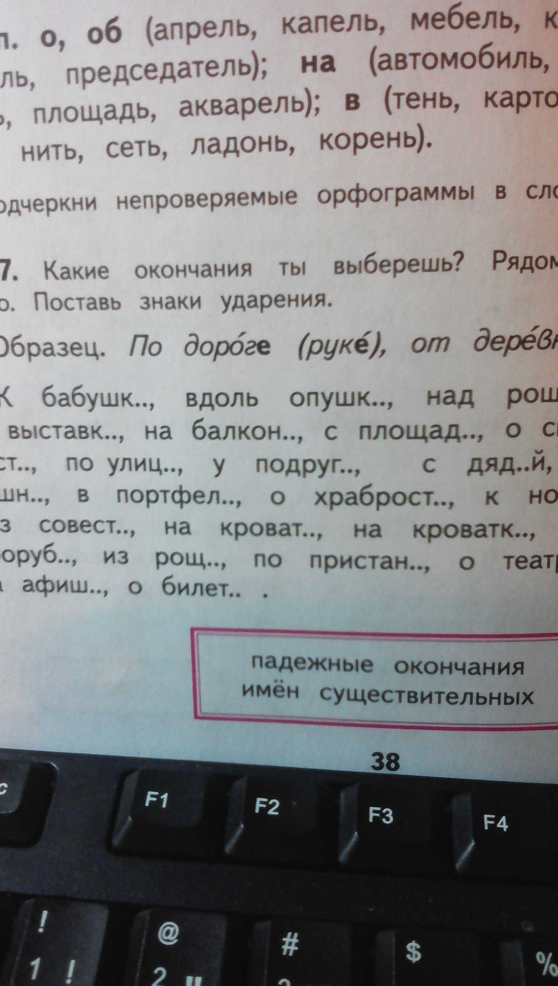 вот образец: слова помошники в 1скл луна, земля,во 2скл окно,конь,в 3скл степь, печь.Значит к бабушке ,в окончание самнения значи -опредили склонение и подставь слово помошник,я написал их выше, пример к бабушк... (к земле,луне)