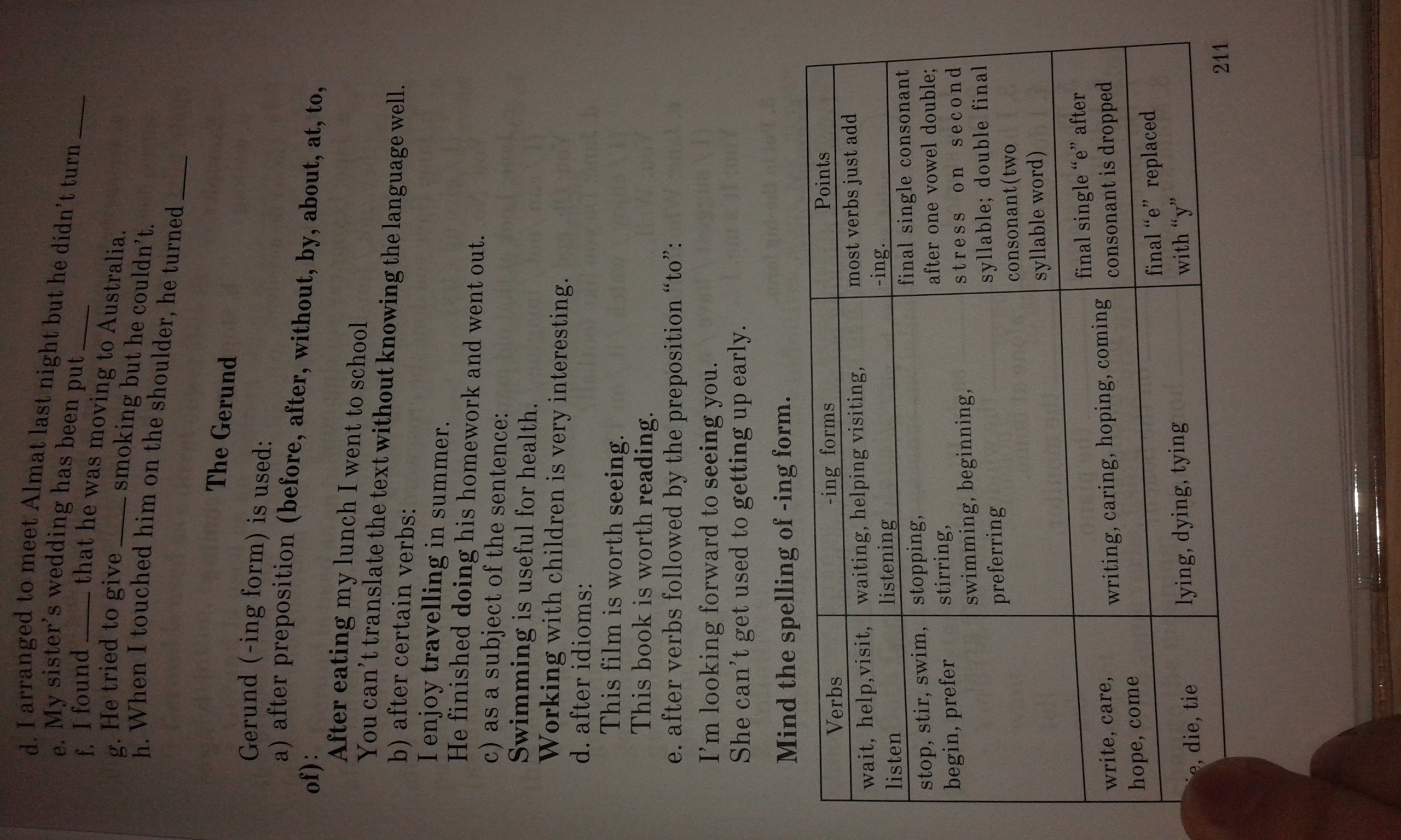 Герундий (ing форма) употребляется: