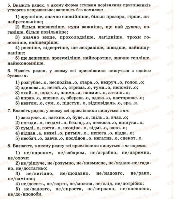 1 - 4), 2 - 5), 3 - 3), 4 - 5), 5 - 2) більш впевнено, куди важче, щонайдужче, гірше, більш повільно. 6 - 4), 7 - 3) 8 - 4), 9 - 2) 10 - 3), 11 - 4) 12 - 1) тонше.