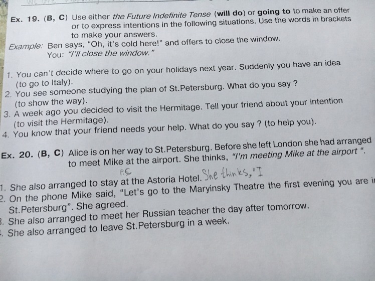 В 20 нужно переделать в прямую речь и сказать в будущем времени что она думает
