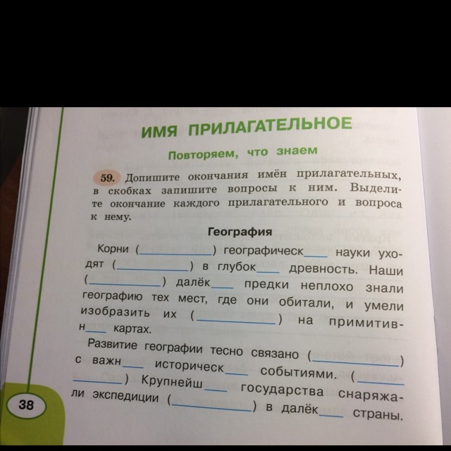 Корни (какОЙ?) географическОЙ науки уходят (в какУЮ?) в глубокУЮ древность.Наши (какИЕ?) древнИЕ предки неплохо знали географию тех мест, где они обитали, и умели изобразить их (на какИХ?) на примитивнЫХ картах.