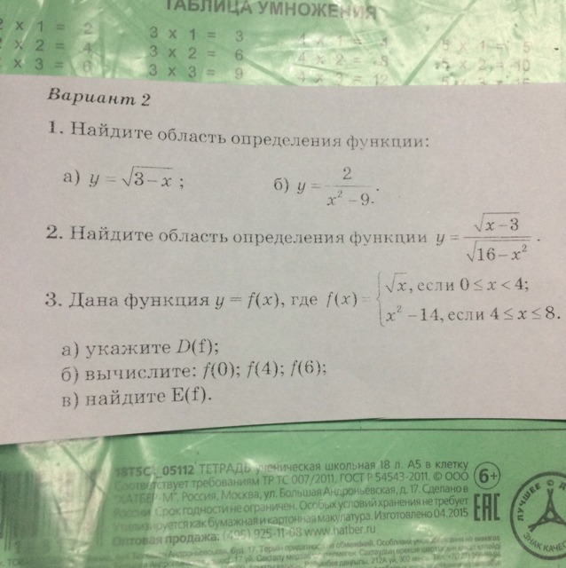 а) D(f) ∈ [0; 8]