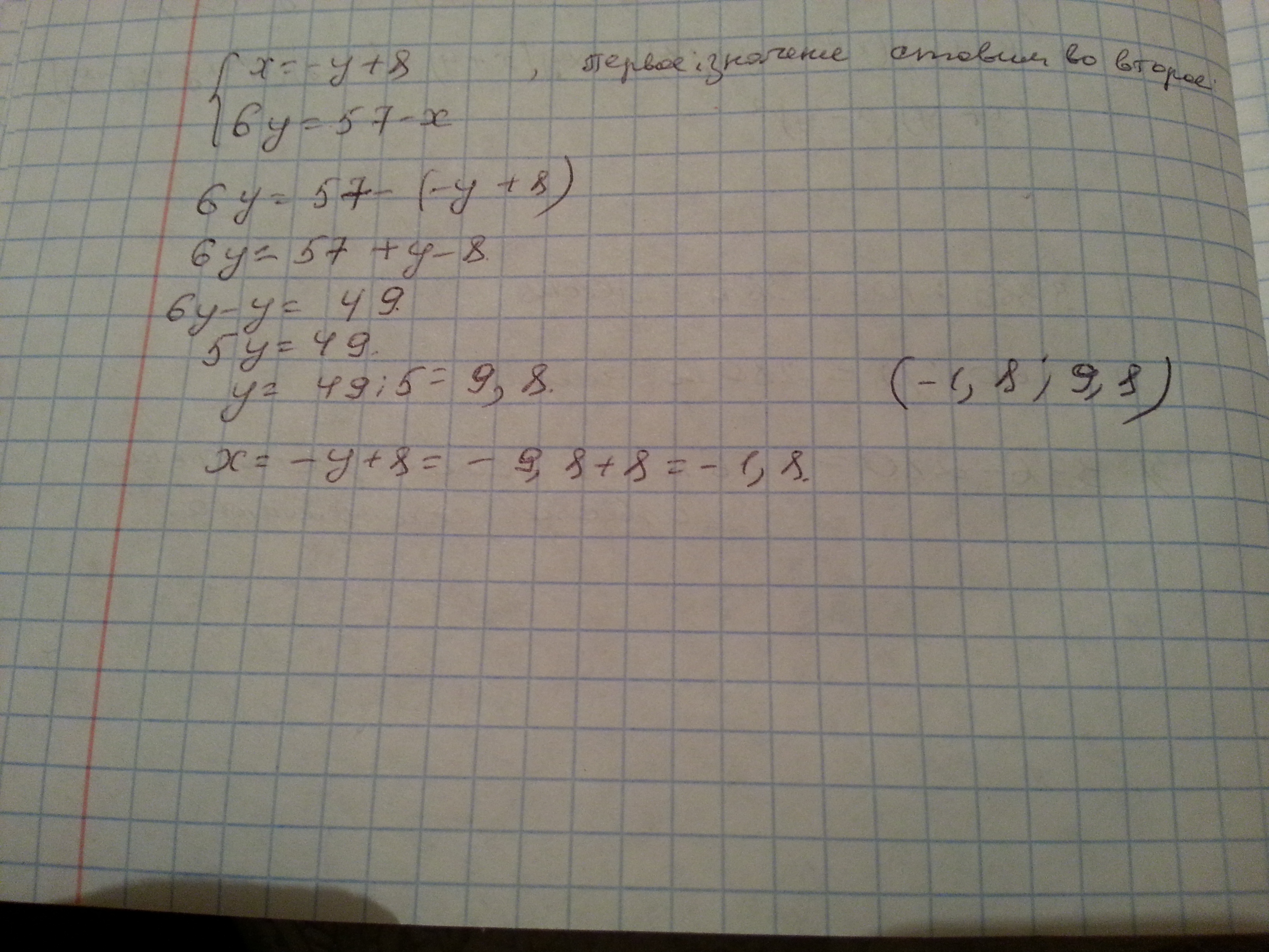x=-y+8. 6y=57- x как решить? Помогите быстро,пожалуйста