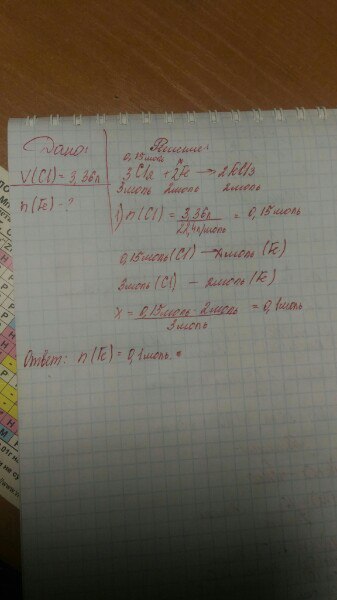 какое количество железа вступит в реакцию с 3.36 литров хлора? ПОМОГИТЕ!