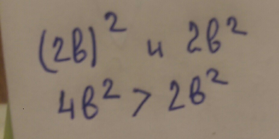 Сравните (2b в квадрате) и 2b в квадрате. ответ объясните