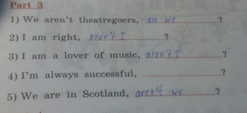 1. are we? 2,3,5 - правильно 4 aren't I?
