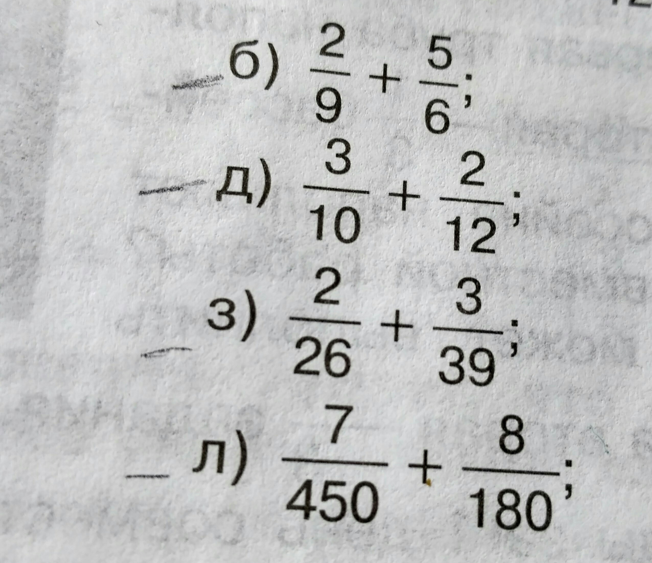 Помогите пожалуйста решить примеры(дроби)!!!б,д,з,л