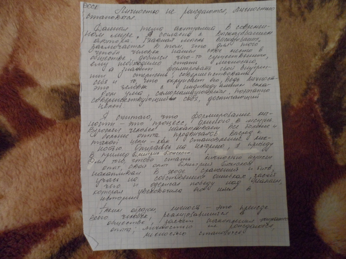 Нужно написать эссе по определенным критериям: