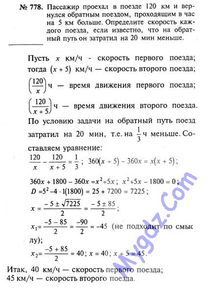 Пассажир проехал в поезде 120 км и вернулся с обратным проездом, проходящим в час на 5 км больше. Определите скорость каждого поезда, если известно, что на обратный путь он затратил на 20 мин меньше.