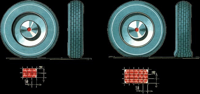 2. По следу (отпечатку) шины определите, во сколько раз изменилось давление шины на поверхность дорог