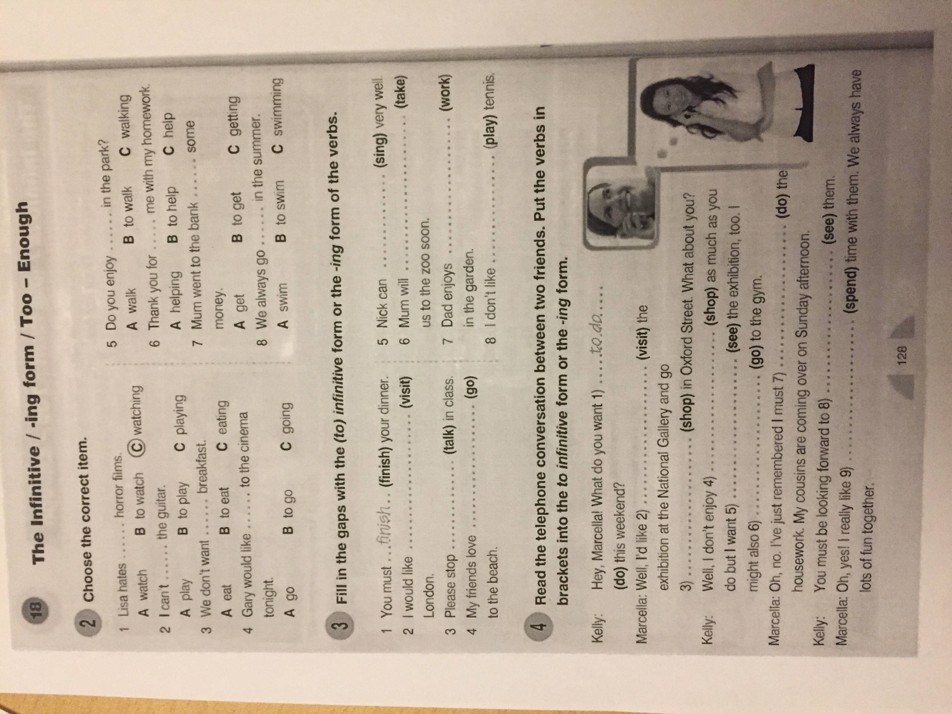 3) 2 to visit 3 talking 4 going 5 sing 6 take 7 working 8 playing