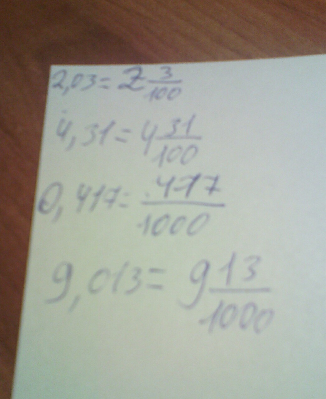 в виде обыкновенной дроби показывать как переводите !!!!!: 2,03;4,31;0,417;9,013