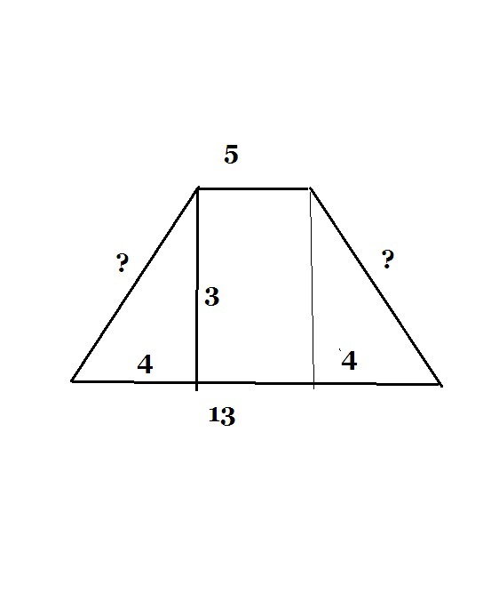 В равнобокой трапеции основания равны 5 и 13,а высота равна 3. Найдите длины боковых сторон.