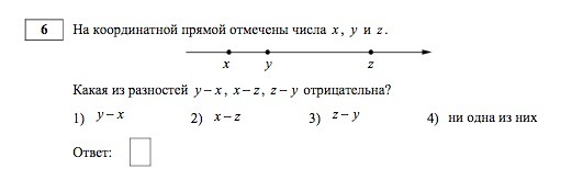 5^(-3)*5^(-9)/5^(-11)=5^(-12)/5^(-11)=5^(-1)=1/5. правильный ответ: цифра 3. при умножении показатели степеней складываются, при делении показатели степеней вычитаются. ^- это степень. 6). так как x<z( расположена левее на оси) , следовательно разность( x-z ) отрицательна. правильный ответ : цифра 2.