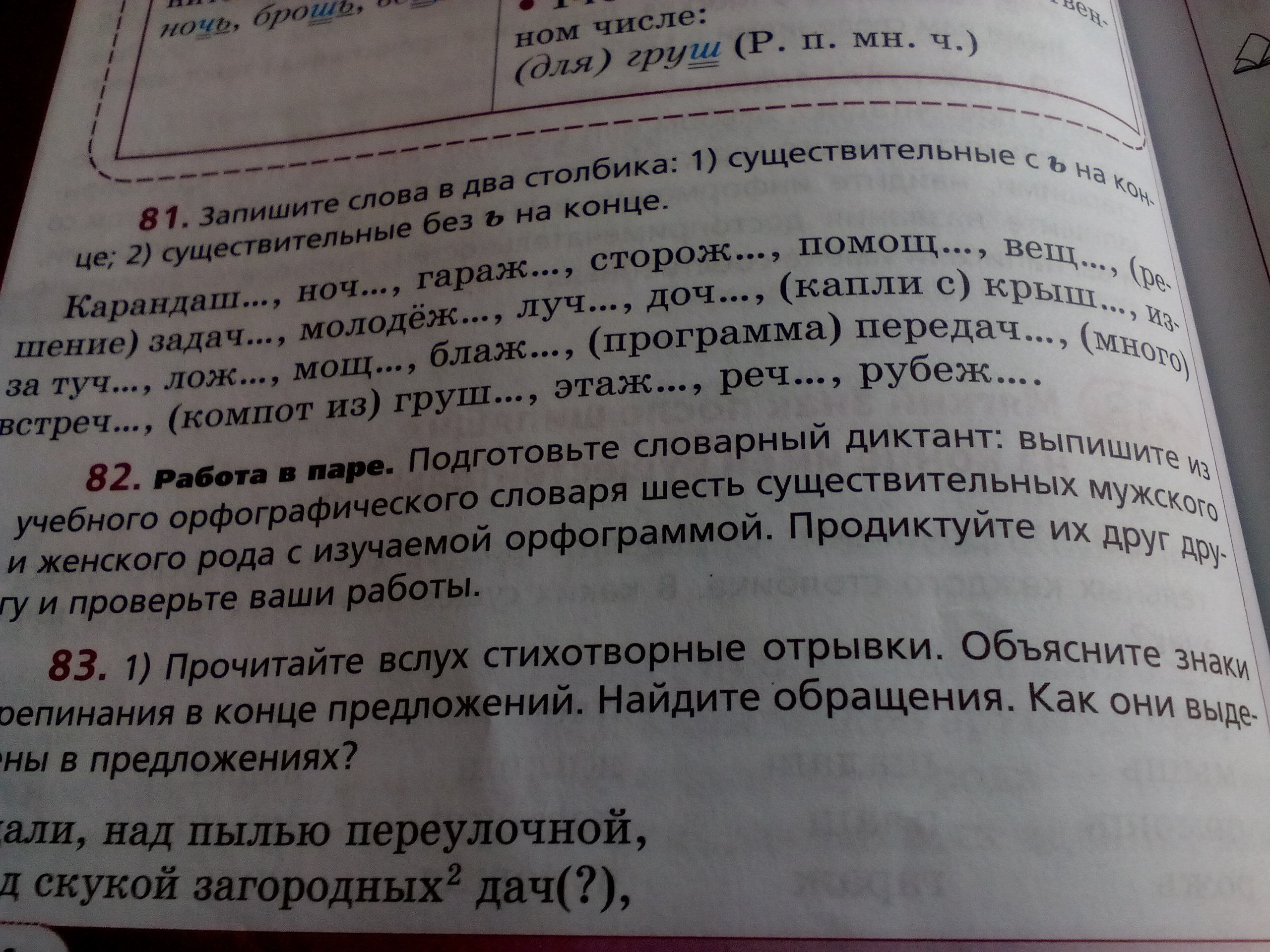 Тема: Мягкий знак после шипящих на конце имён существительных. Упр.82
