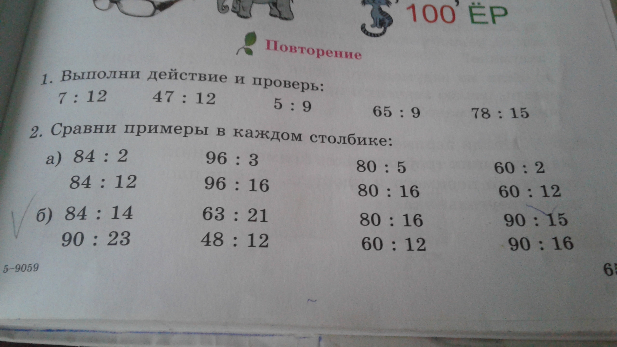 84:2=42 84:12=7 84:14=6 (90:23=в этом примере нету ответа даже на калькулятаре получается 3.91304348.) 96:3=32 96:16=6 63:21=3 48:12=4 80:5=16 80:16=5 80:16=5 60:12=5 60:2=30 60:12=5 90:15=6 (90:16=90 не делится на 16.)✋:-)