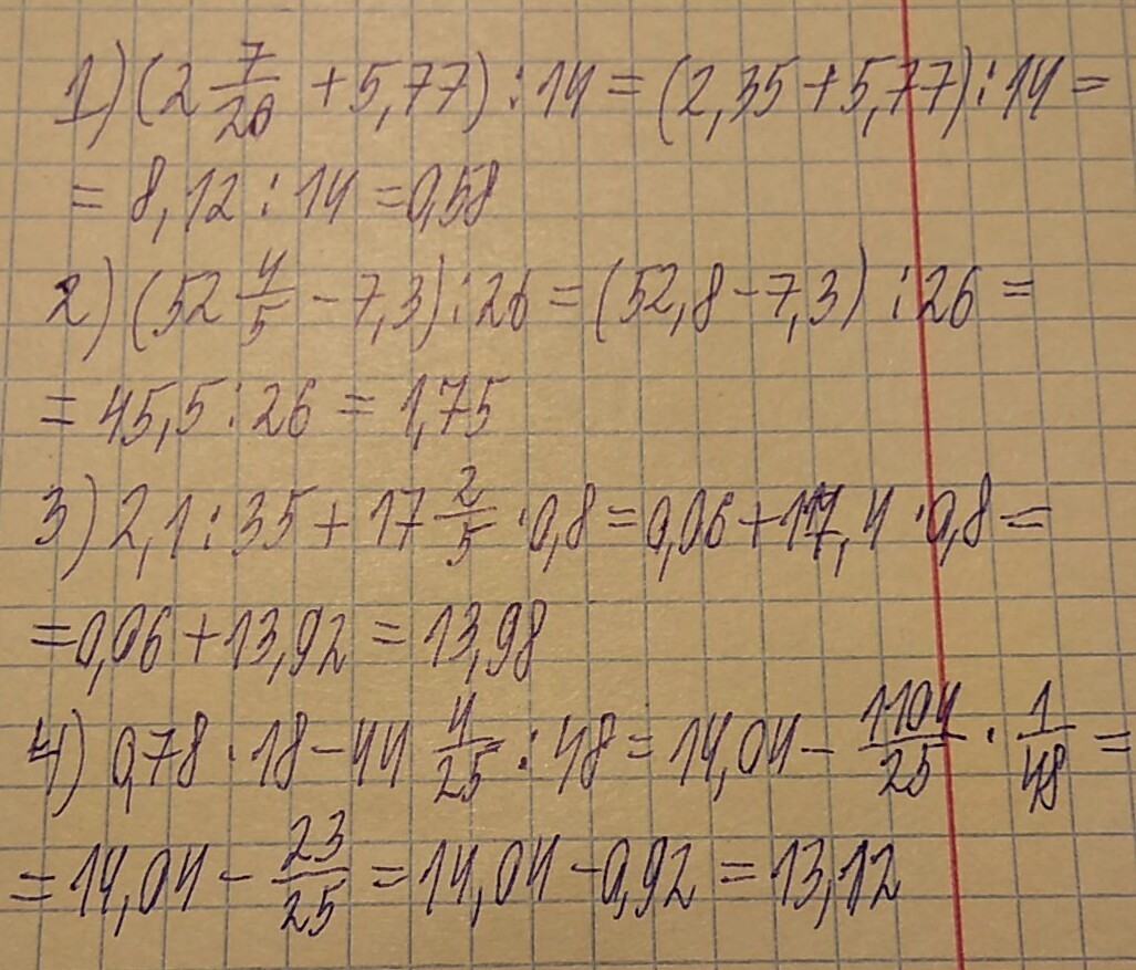 1). (2 7/20+ 5,77):14=