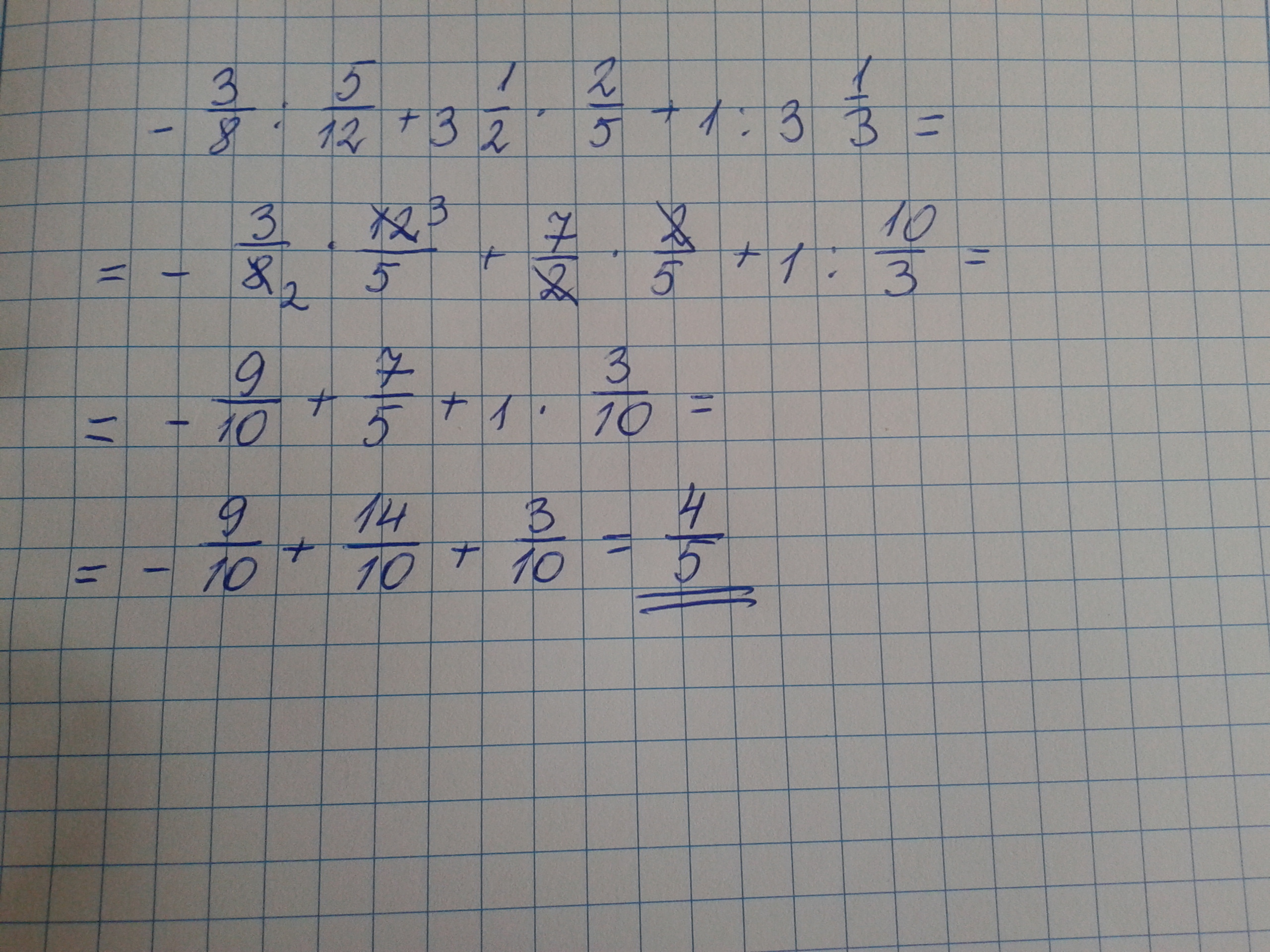 -3/8:5/12+3 целых 1/2*2/5+1:3 целых 1/3
