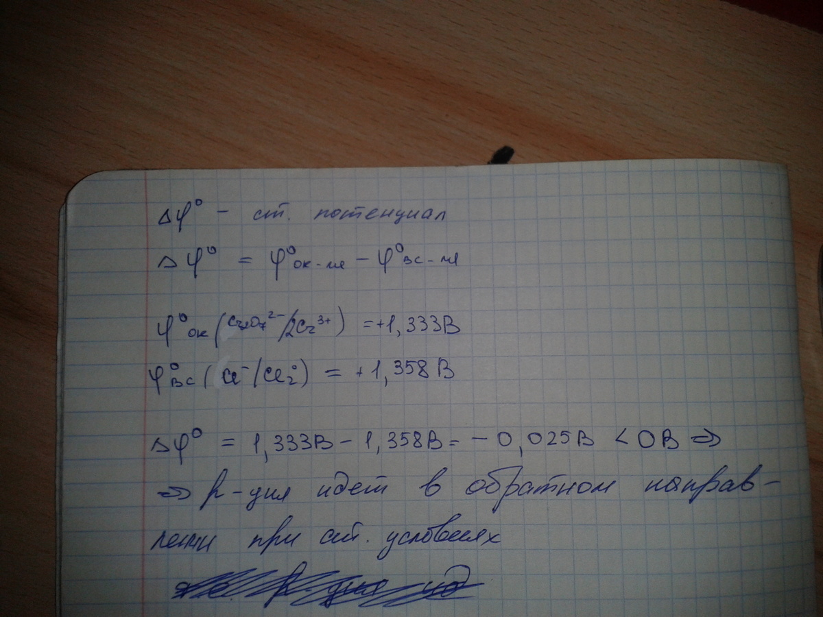 Определите, в каком направлении в стандартных условиях могут самопроизвольно протекать следующие окислительно - восстановительные реакции. K2Cr2O7+14HCl<--> 3Cl2+2CrCl3+2KCl+7H2O