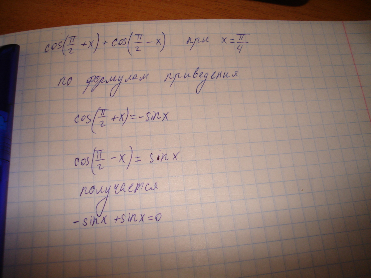 вычислить cos(пи/2+x) +cos(пи/2-x) при х=пи/4