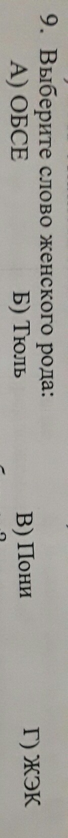 Выбери слово женского рода.