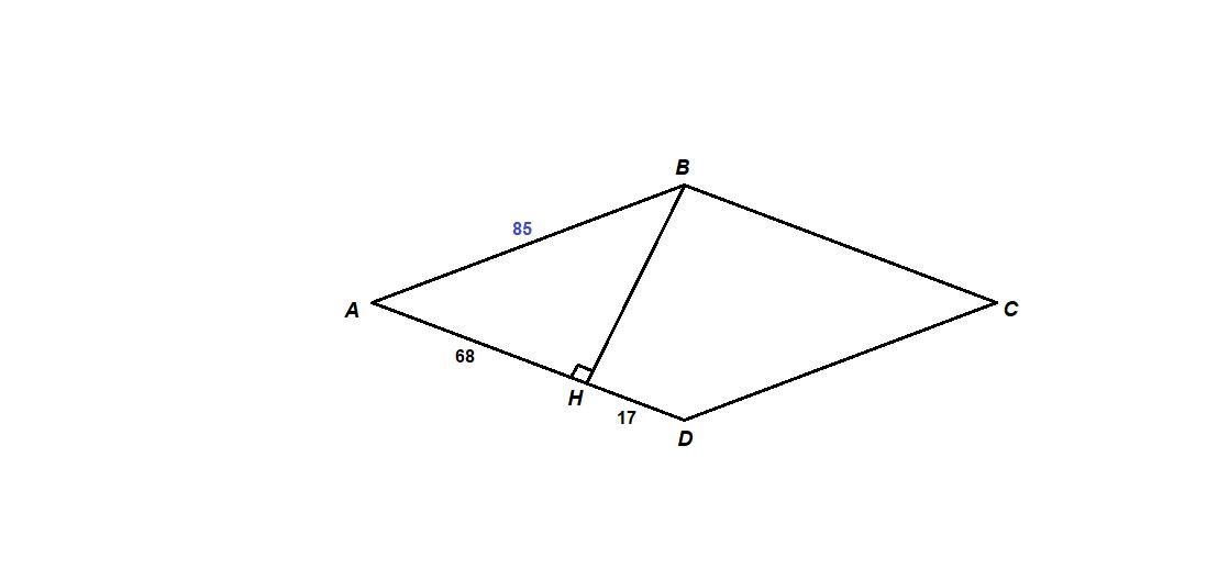 Высота BH ромба ABCD делит его сторону AD на отрезки AH=68 и HD=17.Найдите площадь ромба.