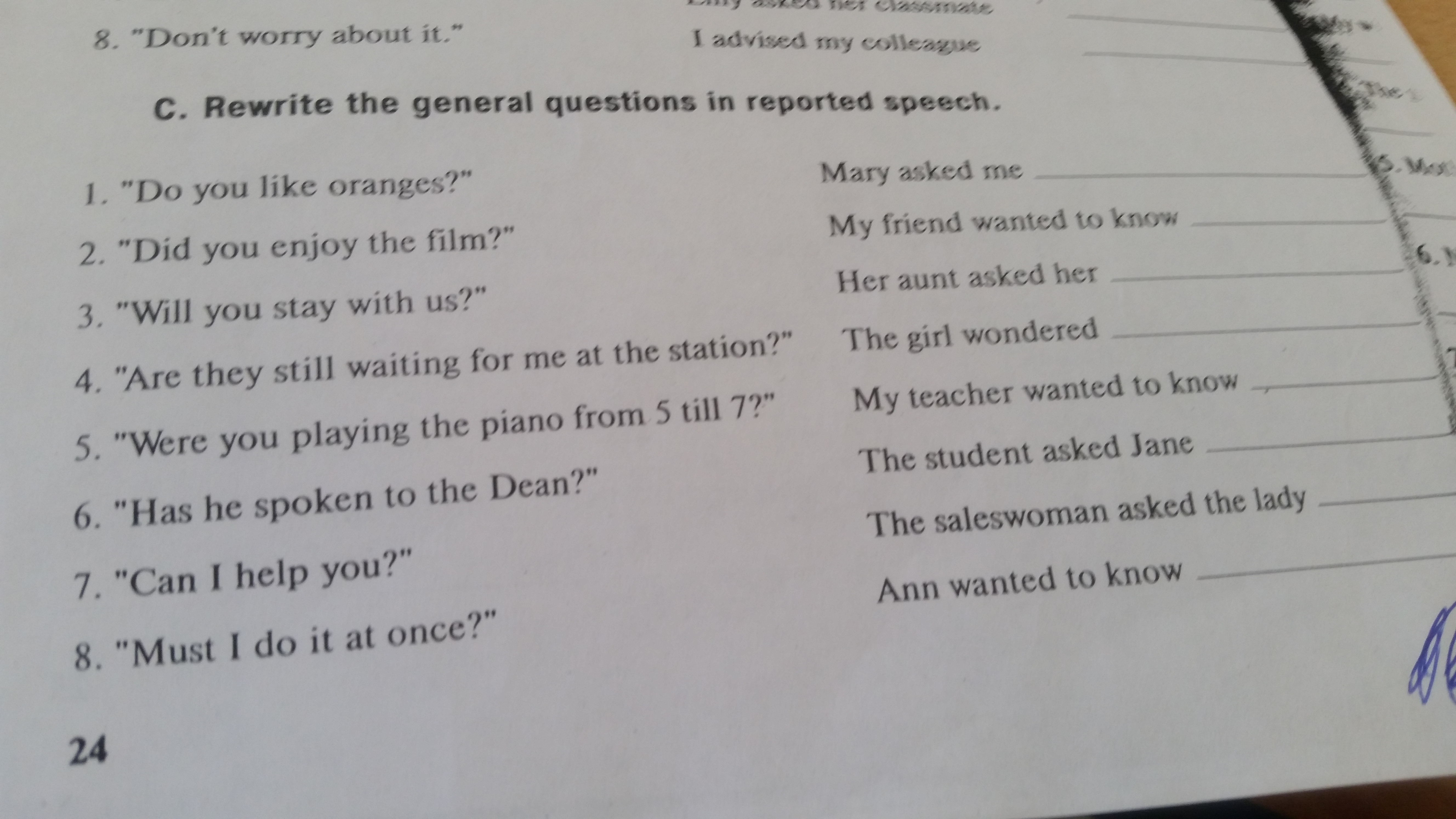 Перести в косвенную речи очень срочно помогите пожалуйста