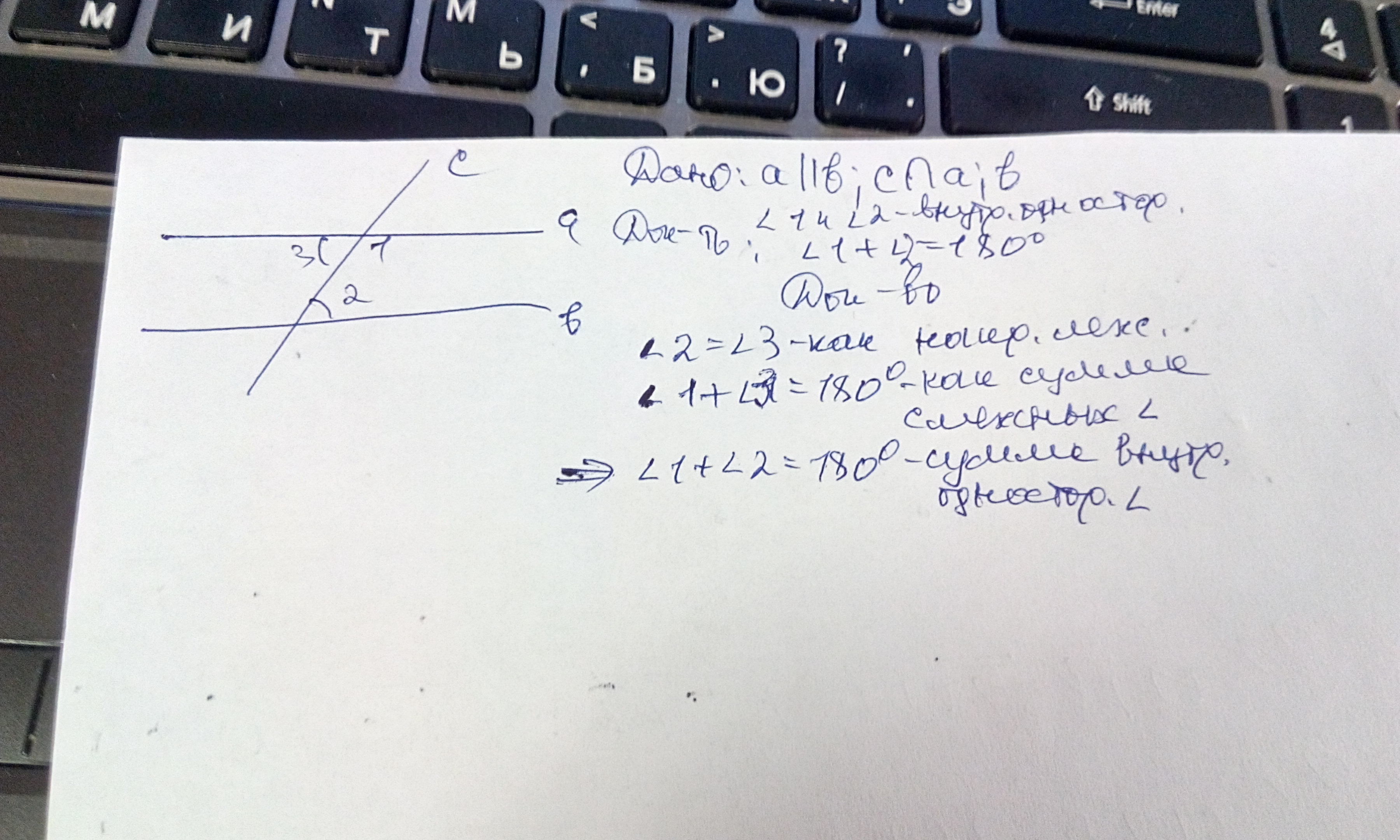 Сумма односторонних внутренних углов равна 180°.