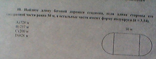 площадь стадиона S=So +S□ = pi*(d/2)^2 +a^2 = pi*(50/2)^2 +50^2 =