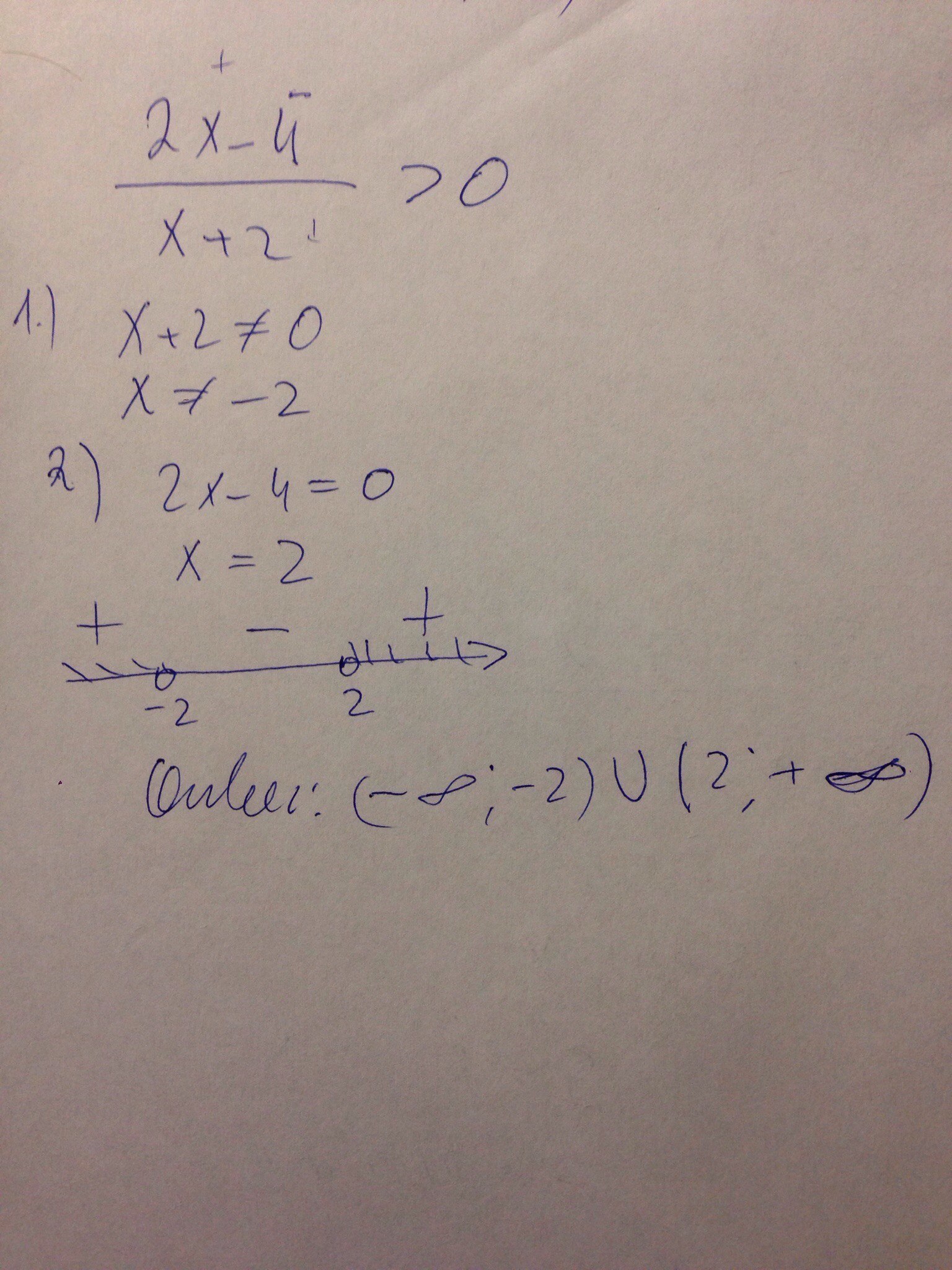2х-4/х+2 >0