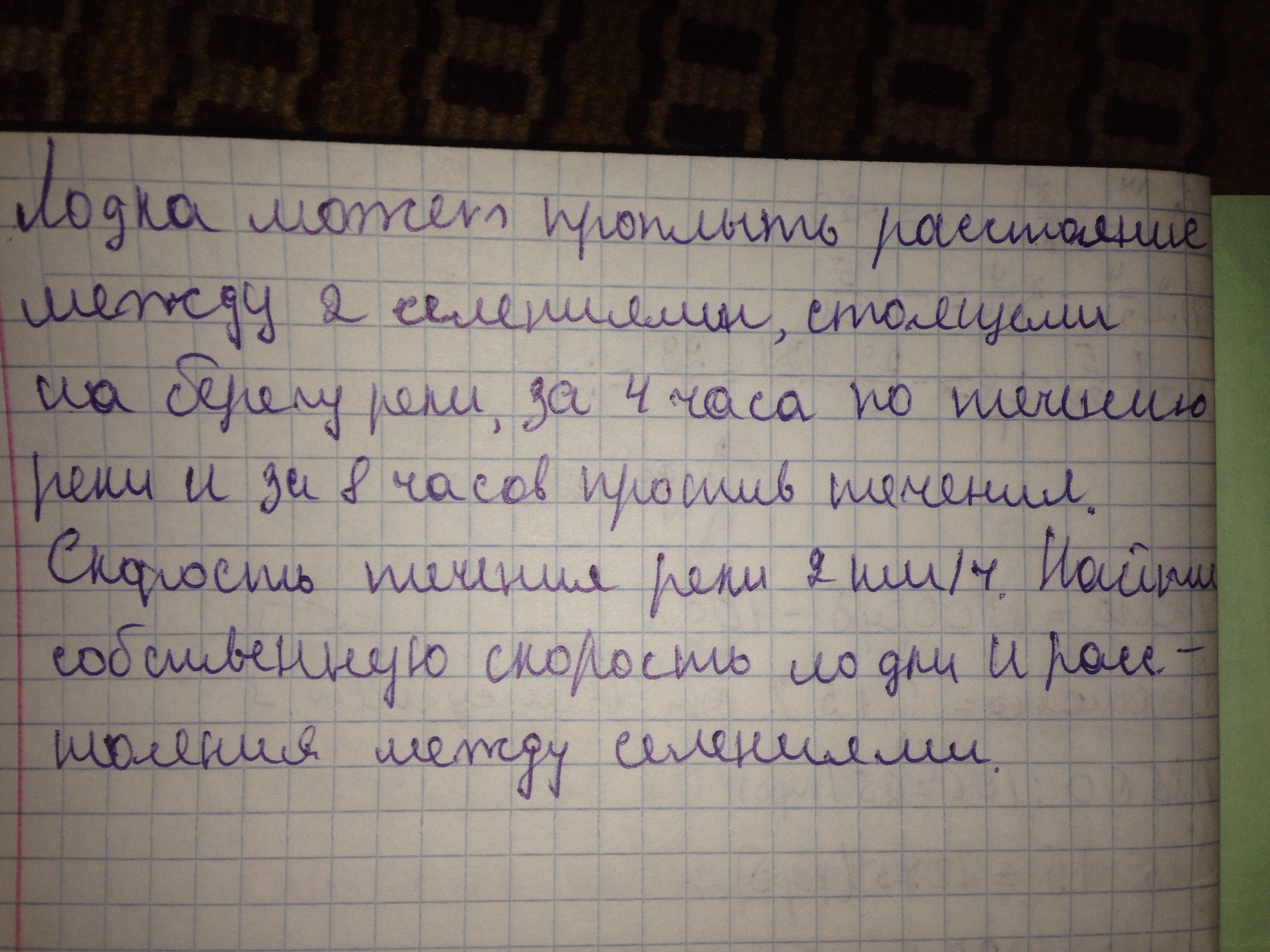 Пусть х км/ч собственная скорость, тогда (х+2) км/ч скорость по течению, (х-2) скорость против течения. Составляем и решаем уравнение 4(х+2)=8(х-2) т.к. расстояние одинаковое. 4х-8х=-16-8 -4х=-24 х=6 км/ч- собственная скорость. 1)4*8=32 км- расстояние между селениями.