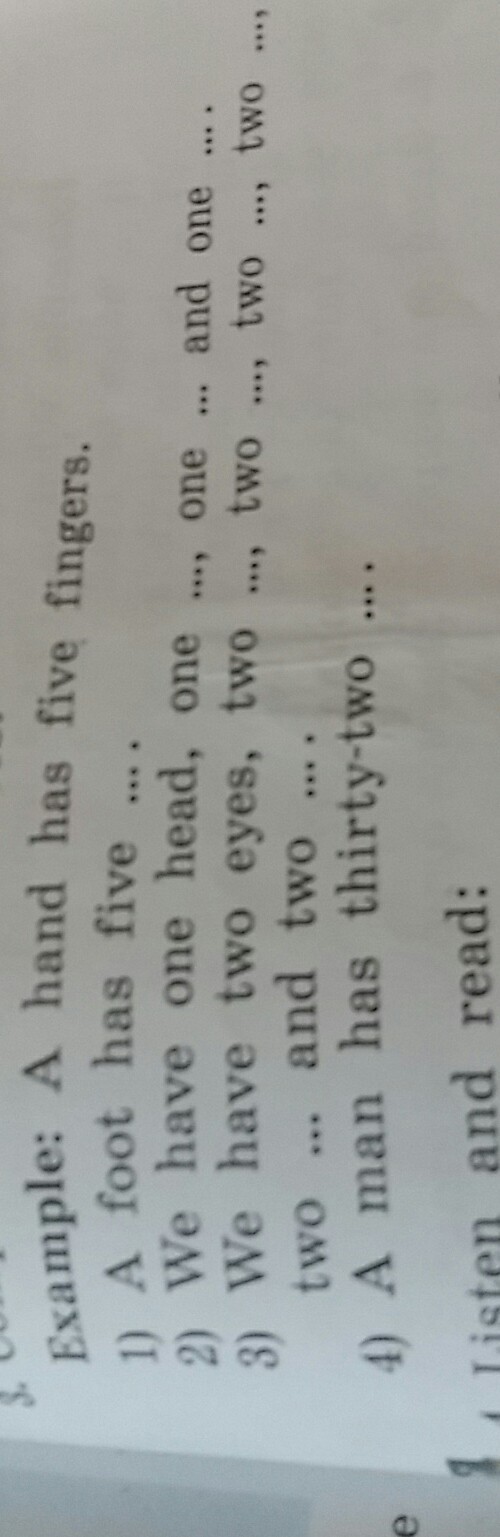 3) two ears, two arms, two legs, two hands and two feet