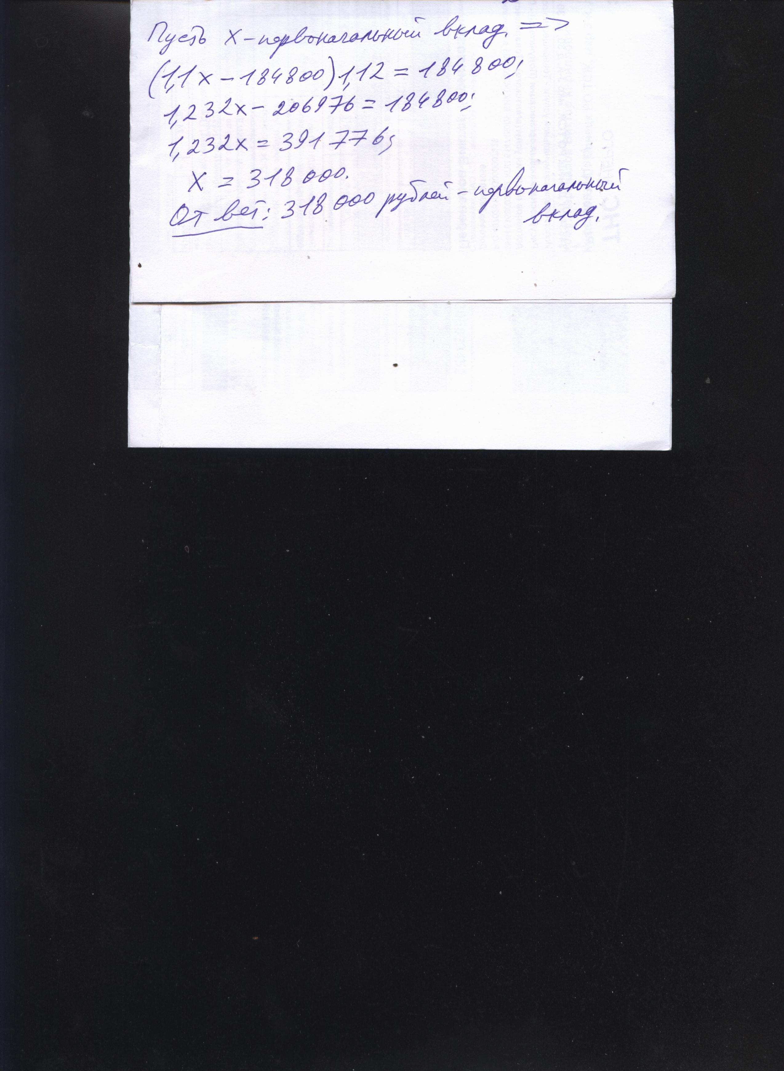 Вкладчик положил в банк депозит (вклад) под 10% годовых. Через год он решил забрать из банка всю сумму депозита с процентами, но банк предложил увеличить процентную ставку по депозиту до 12%. Вкладчик снял только часть суммы, оставив остальную часть еще на один год на новых предложенных банком условиях. По истечении второго года вкладчик закрыл депозитный счет, и банк выплатил ему всю оставшуюся сумму вместе с начисленными процентами. Какова была сумма исходного вклада (в тысячах рублей), если и по истечении первого года, и при окончательном расчете клиент получил в банке одинаковую сумму в 184800 рублей?