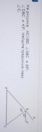 Так как прямые параллельные , углы ДБС и АСВ равны, следовательно угол АСВ 43°