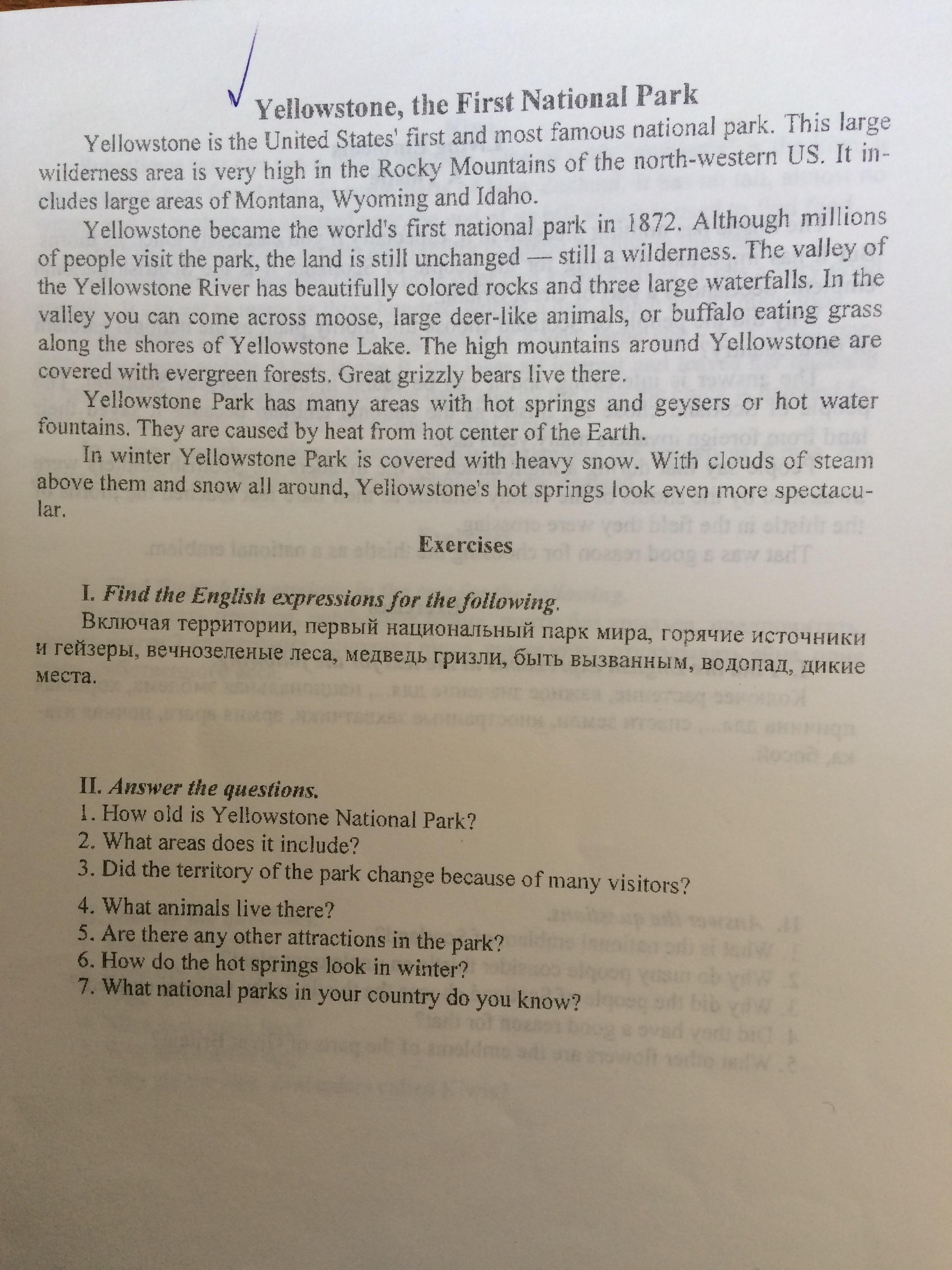 7. "Какие национальные парки своей страны ты знаешь?"