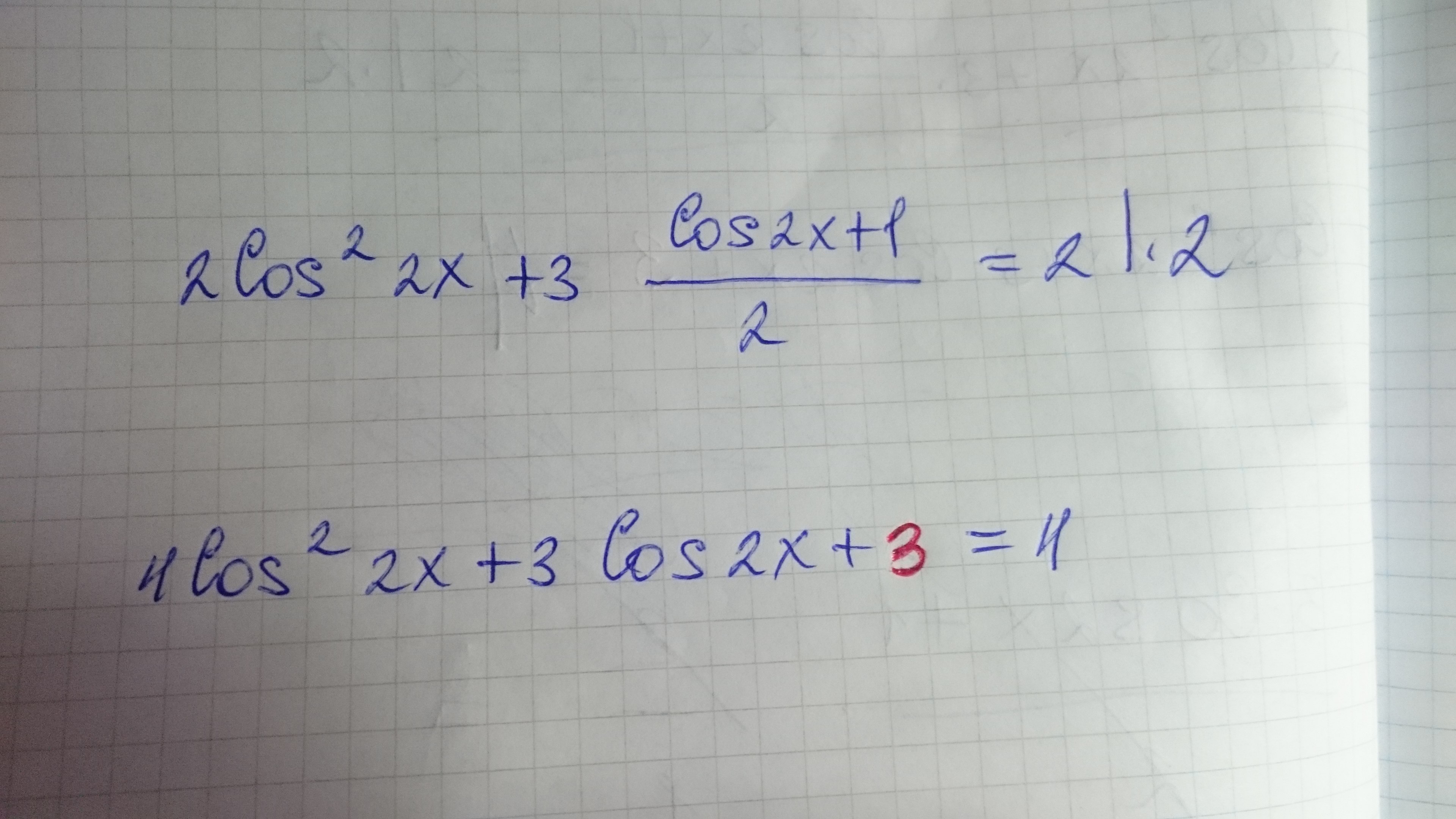 ты всё домножаешь на 2, знаменатель уходит, а числитель остаётся и он равен 3*(cos2x+1)