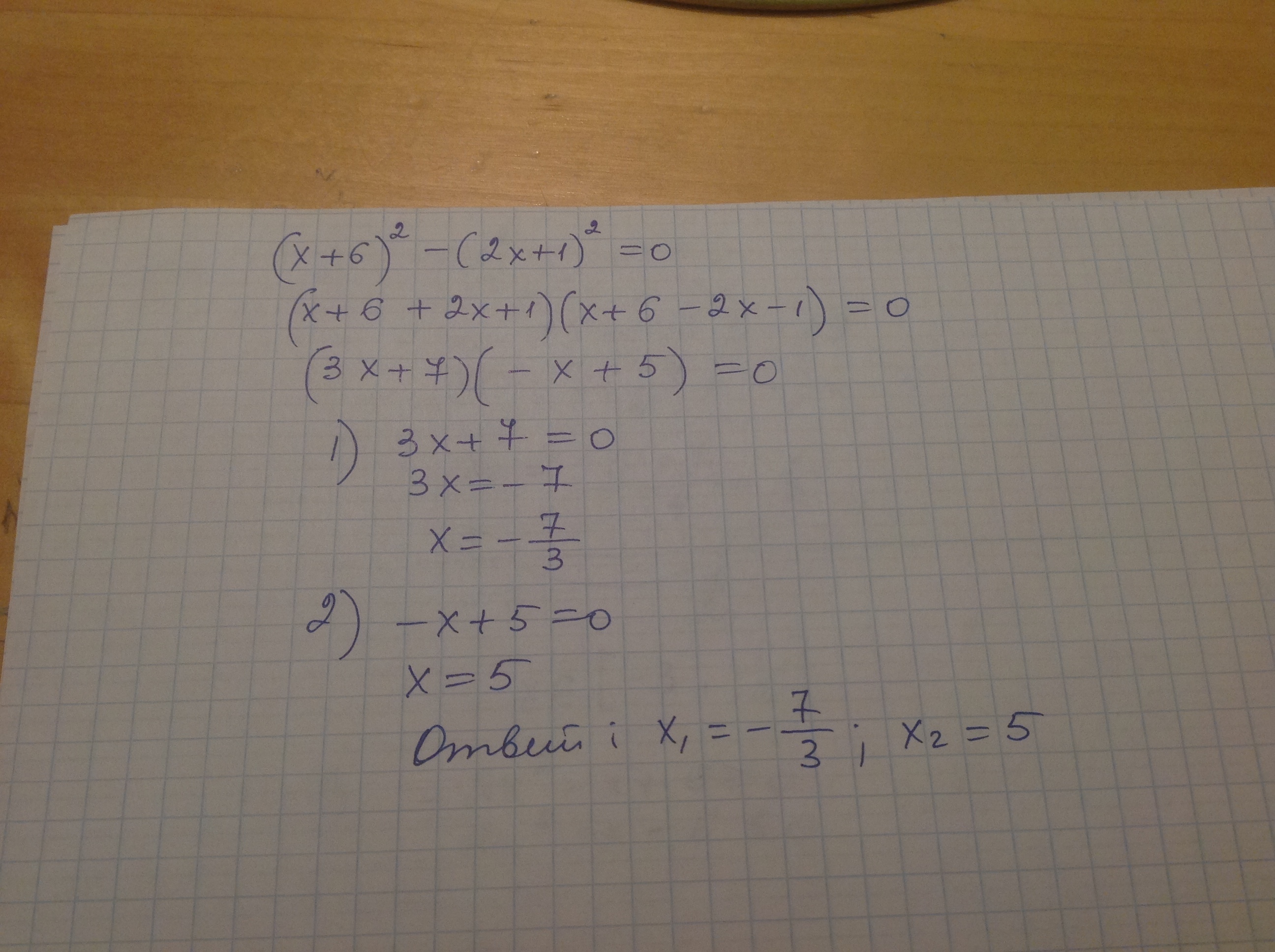 Решите уравнение: (х+6)²-(2х+1)²=0