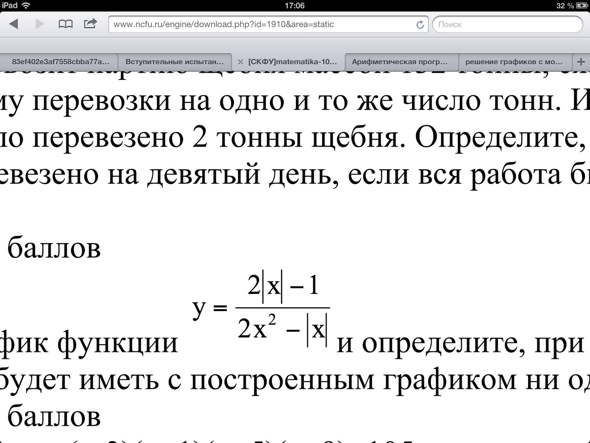 Однако стоит помнить, что знаменатель никогда не равен нулю - поэтому 2[х^2]-[x] так же не равно нулю. Приравниваем к нулю и смотрим, чему не может быть равен х.(он не равен 0;0,5;-0,5).