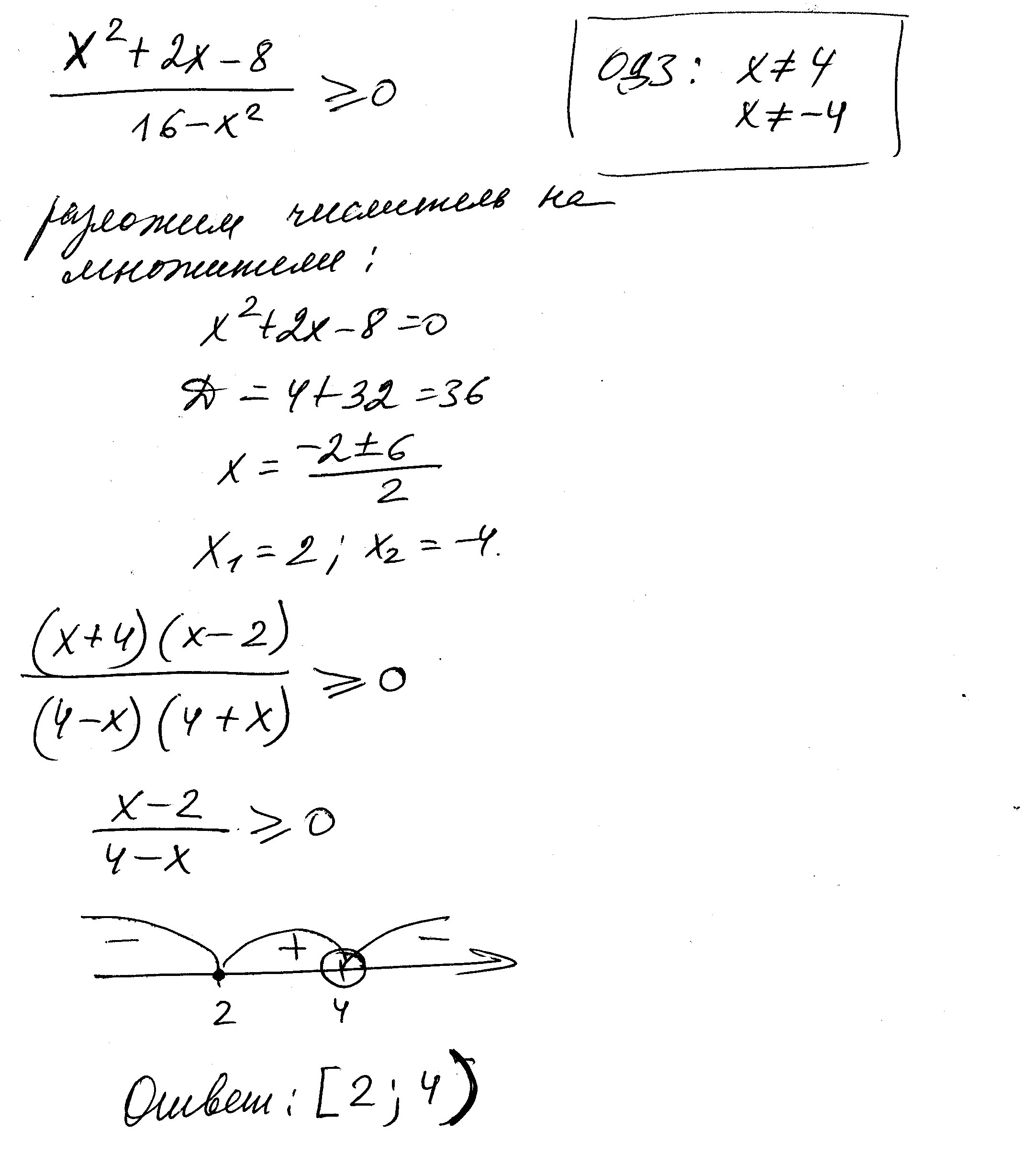 Решите неравенство x^2+2x-8/16-x^2>=0