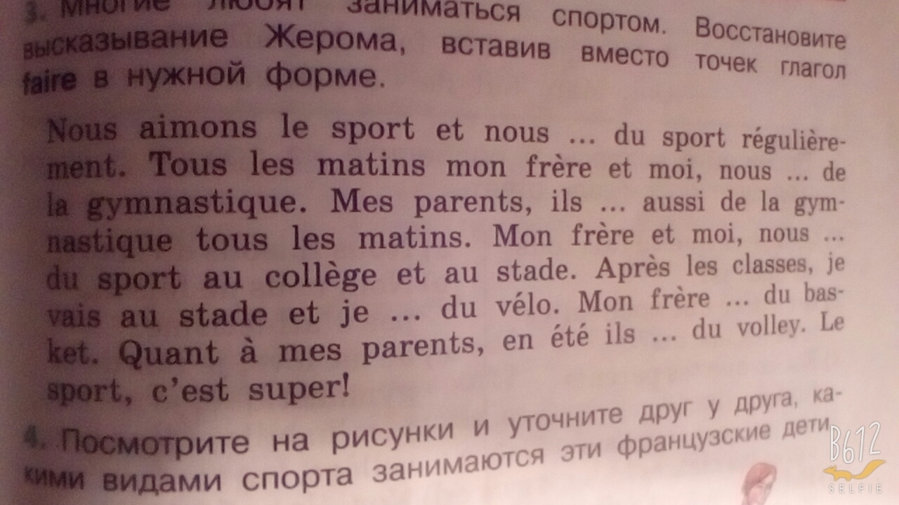 Многие любят заниматься спортом. Восстановите высказывание Жерома, вставив вместо точек глагол faire в нужной форме.