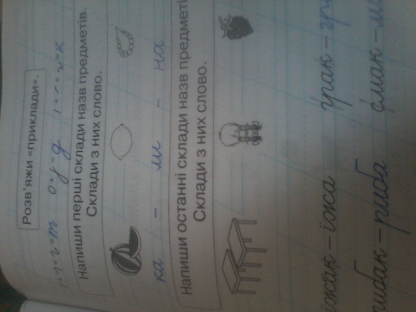 напиши останнi склади назв предметiв.Склади з них слово