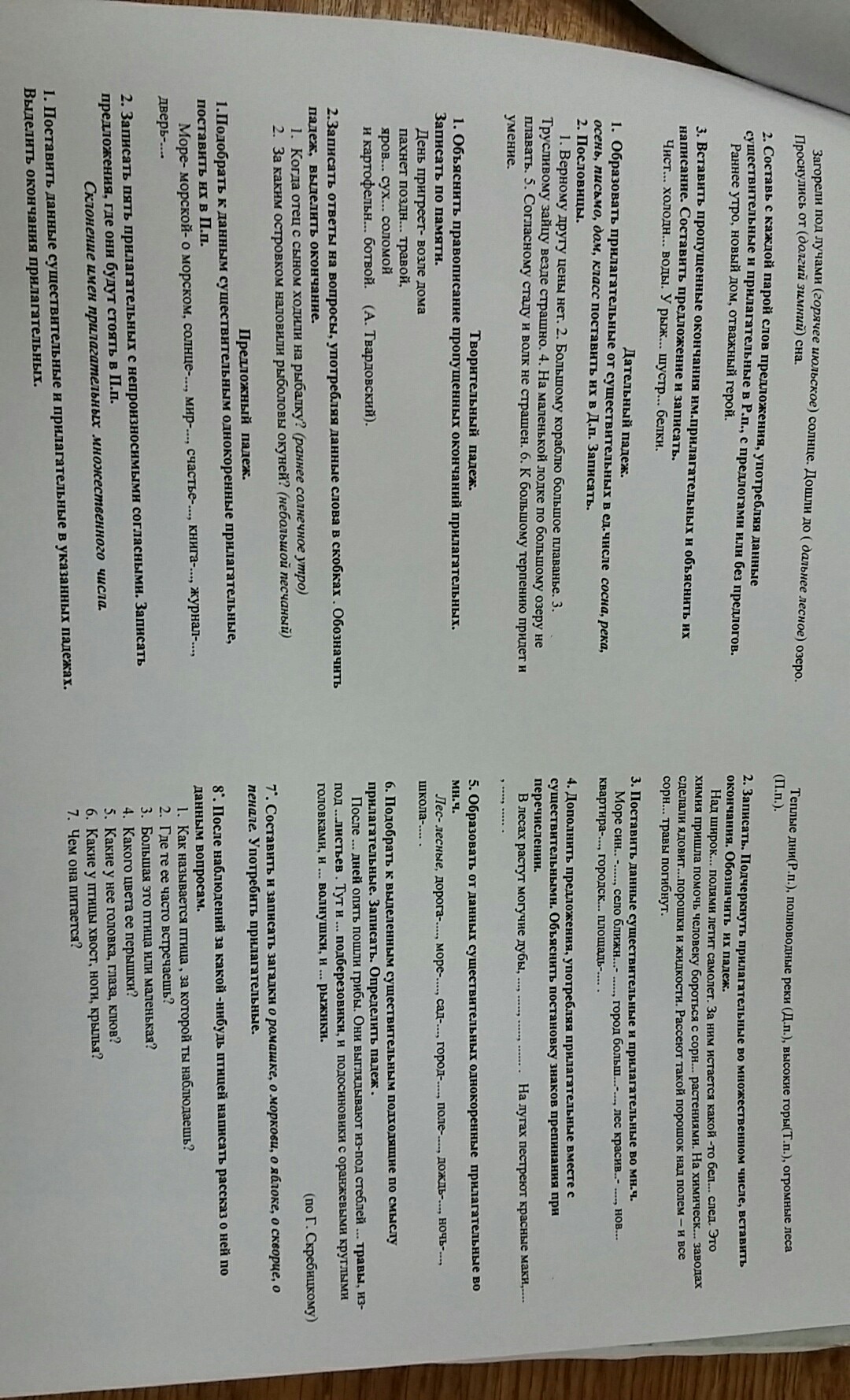 1. тёплых дней Р.п;полноводным рекам Д.п;высокими горами Т.п; об огромных лесах П.п