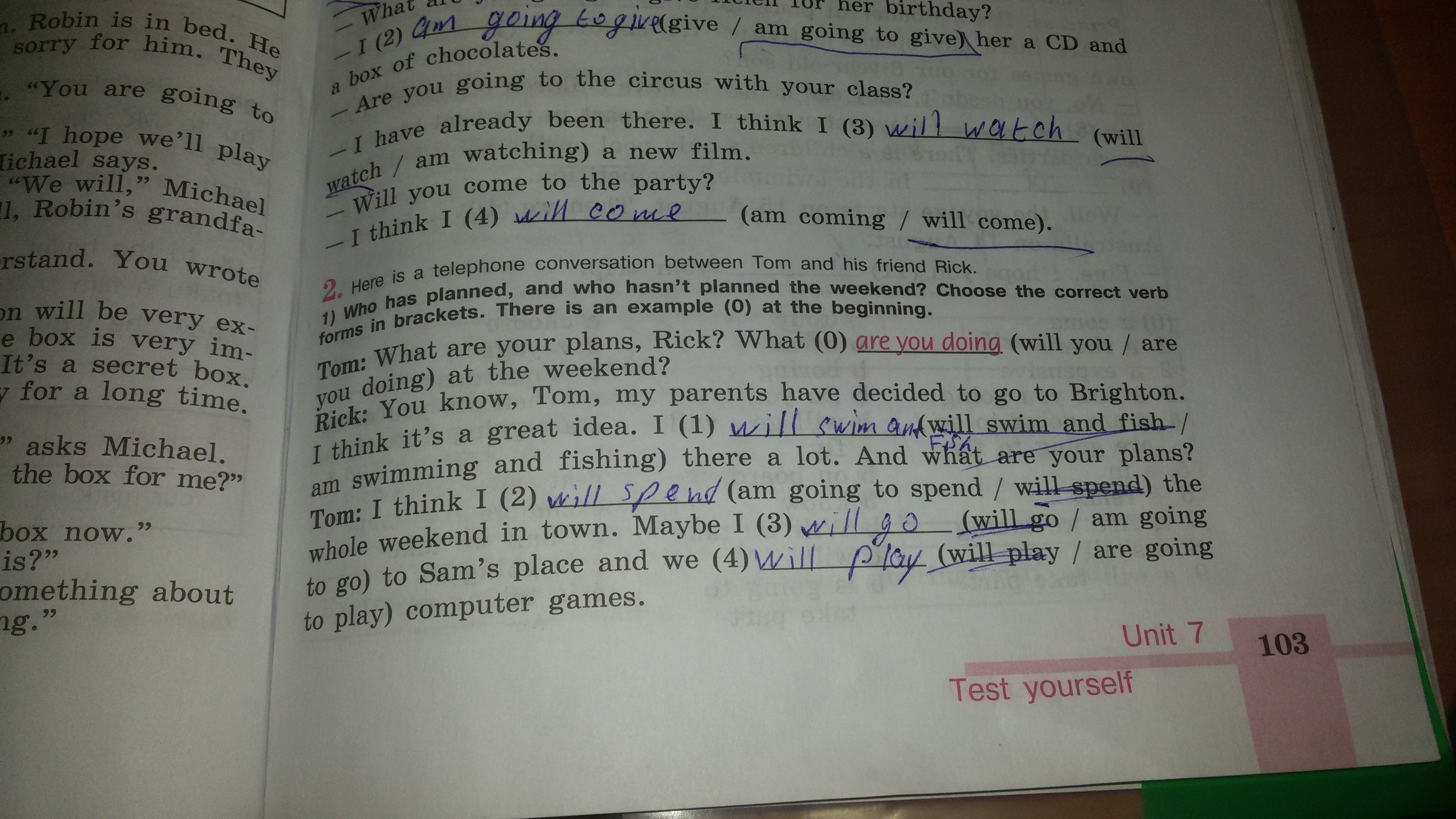 Рик: Знаешь, Том, мои родители приняли решение поехать в Брайтон. Я думаю, это замечательная идея. Я буду там много плавать.