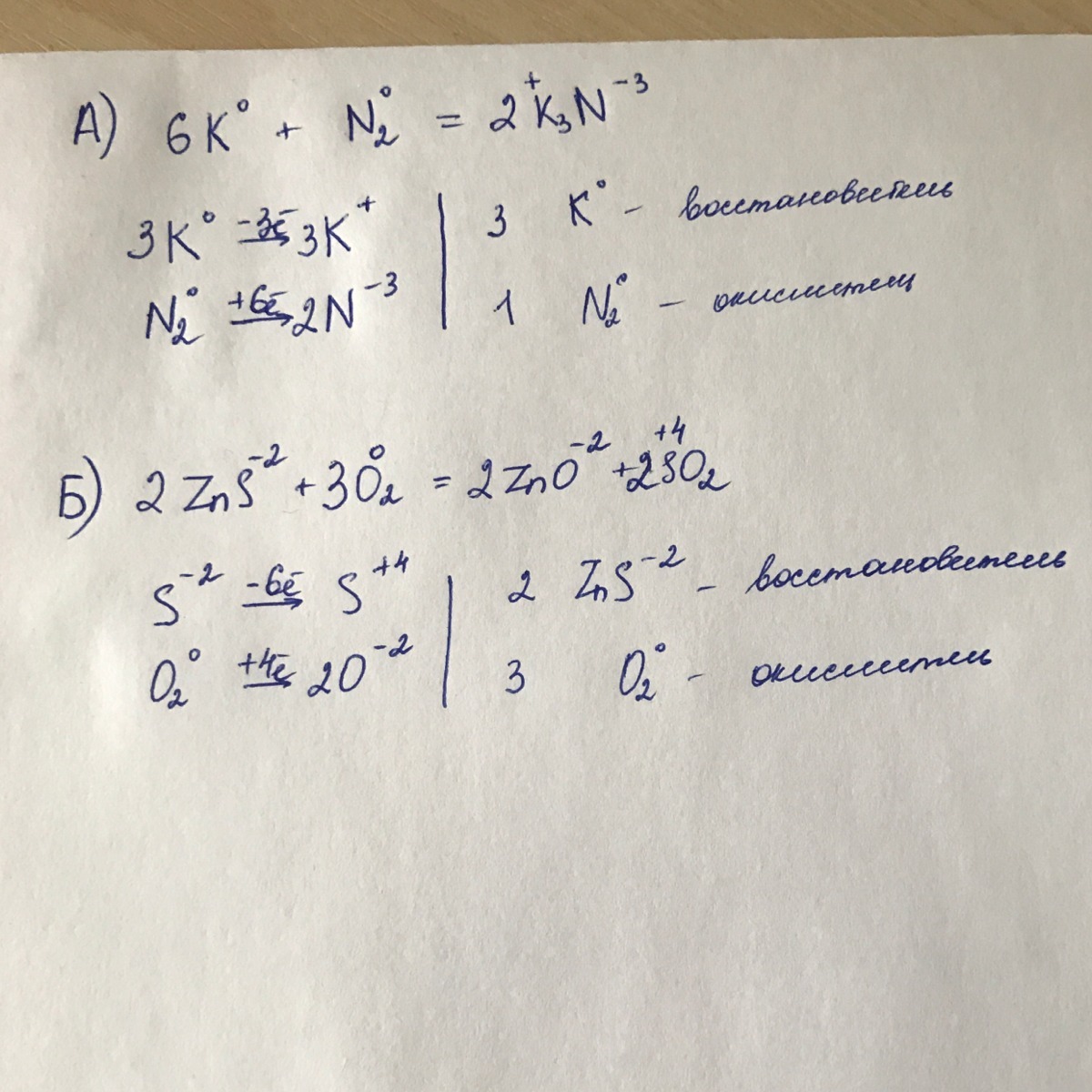 Б) ZnS + O2 = ZnO + SO2