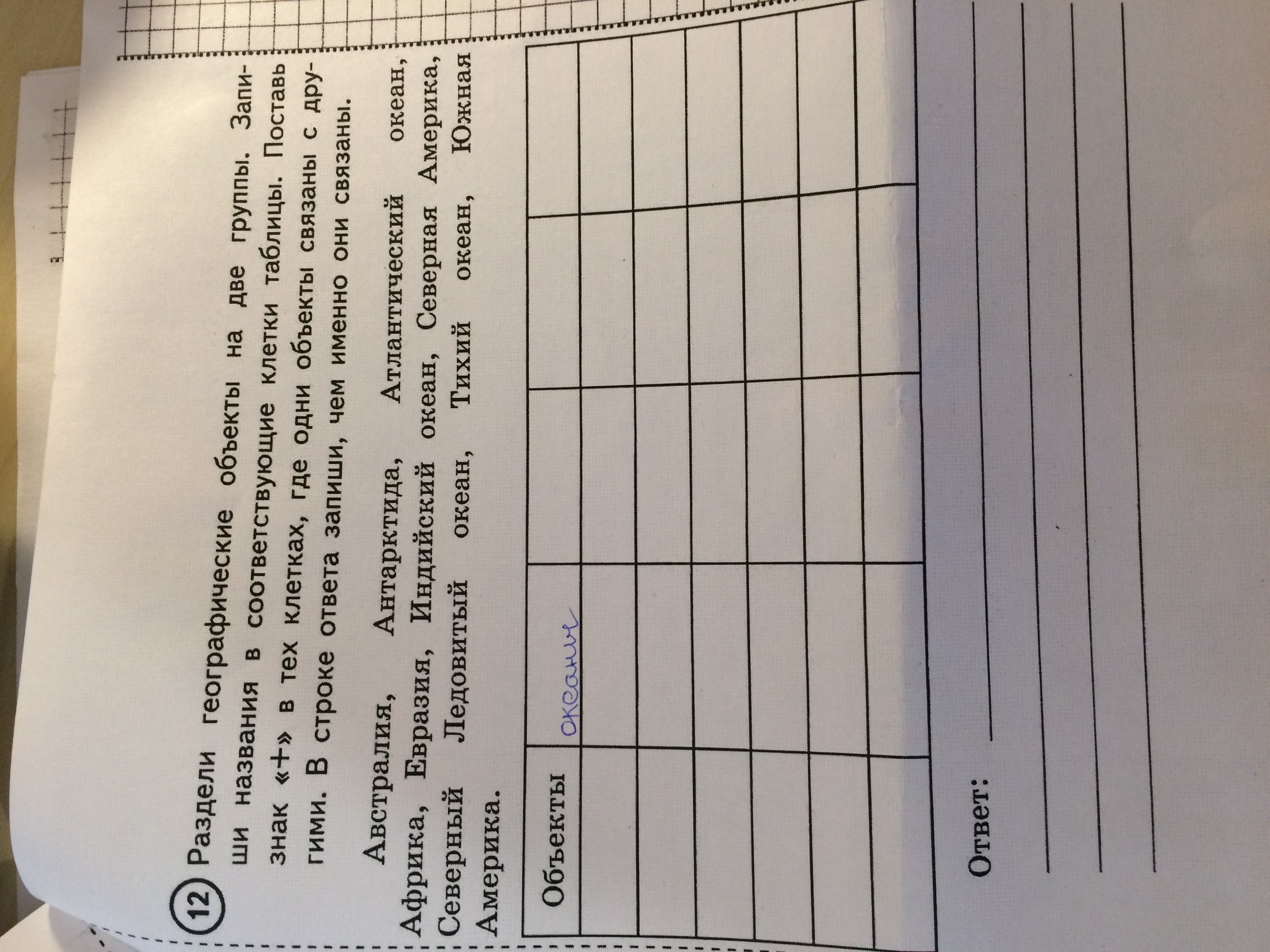объект объекты это океаны и материки к океанам относятся Индийский океан Тихий океан Южный океан Северный Ледовитый океан Северная и Южная евразия