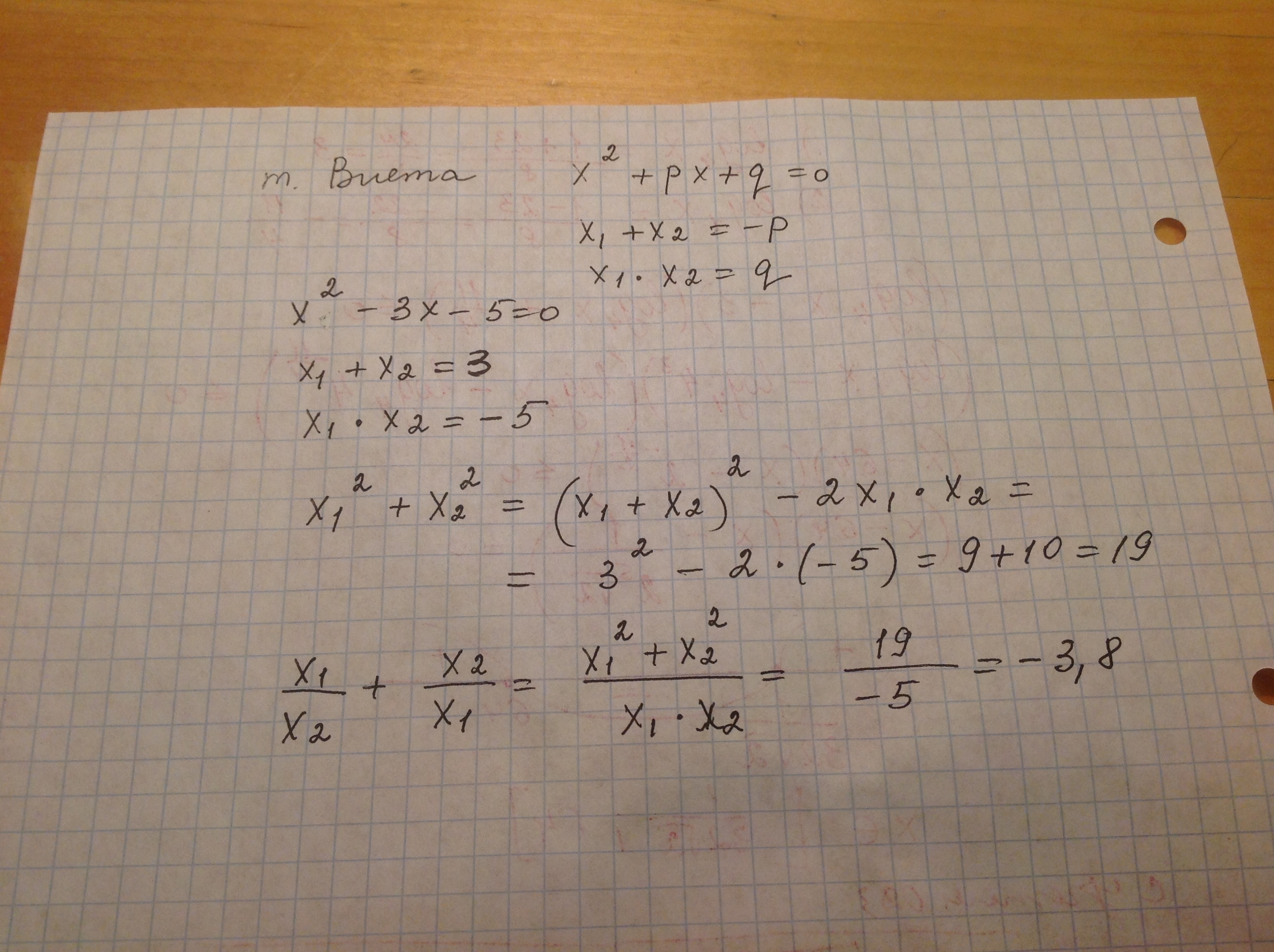 Відомо, що х1 і х2 – корені рівняння х^2 – 3х – 5 = 0. Не розв’язуючи цього рівняння, знайдіть значення виразів: