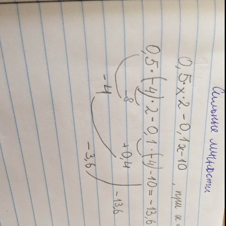 Найдите значение многочлена 0,5x2-0,1x-10 при x=-4