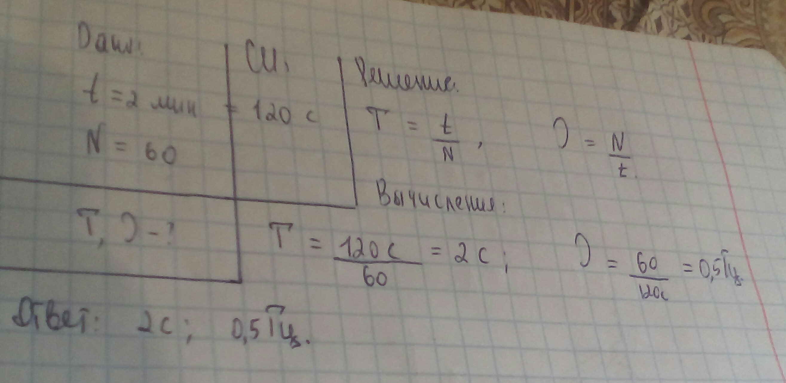 Ответ: 2 с; 0,5 Гц.