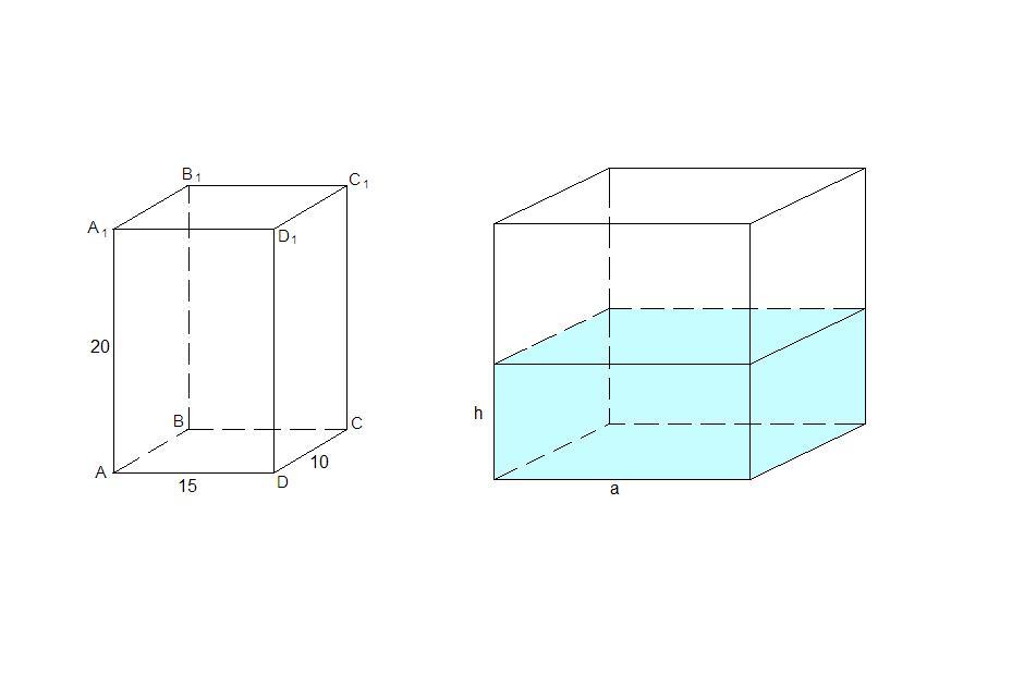 сосуд в виде прямоугольного параллелепипеда с высотой 20 см и сторонами основания 10 см и 15 см наполнен водой.